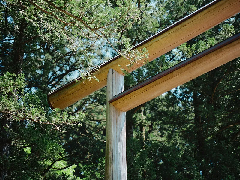 赤城神社の鳥居は、伊勢神宮の直系として、伊勢神宮と同様の形式で建てられています。建てる時には、赤城神社境内より樹齢約150年の杉が選ばれ、切り出されるのです。(現在の鳥居は、令和3年に建て替えられました)